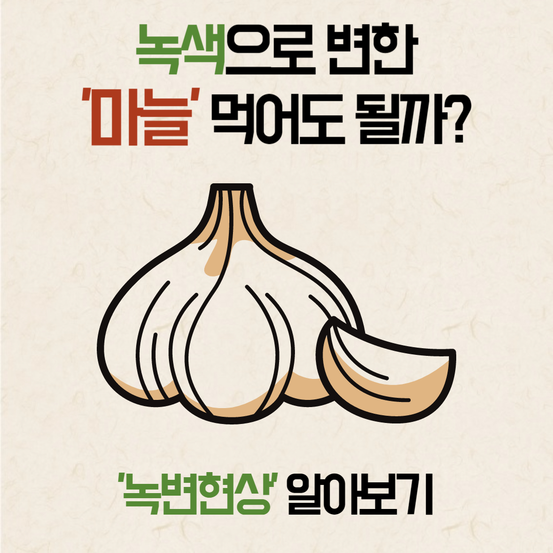✔ 녹색으로 변한 마늘은 인체에 유해하지 않다.→ 색이 변한 마늘은 저온 저장 시 마늘 조직 내의