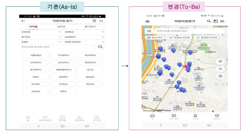 출처 : 보건복지부 기존에는 시간제보육 제공기관을 찾으려면 시 · 도별 모든 기관이 나열되어