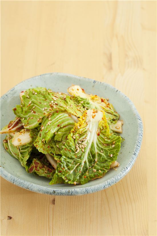 • 봄동에 양념장을 넣고 무쳐주면 마무리로 통깨를 뿌려주면 완성.