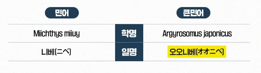 출처:해양수산부 큰 민어는 일본식 이름을 그대로 국내 표준명으로 사용하면서 국제통일상품분류체계