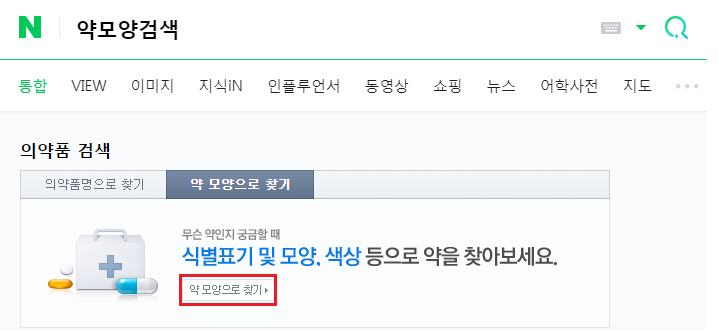 이럴 때는 약 이름이나 약 모양으로도 약 정보 검색이 가능하다.
