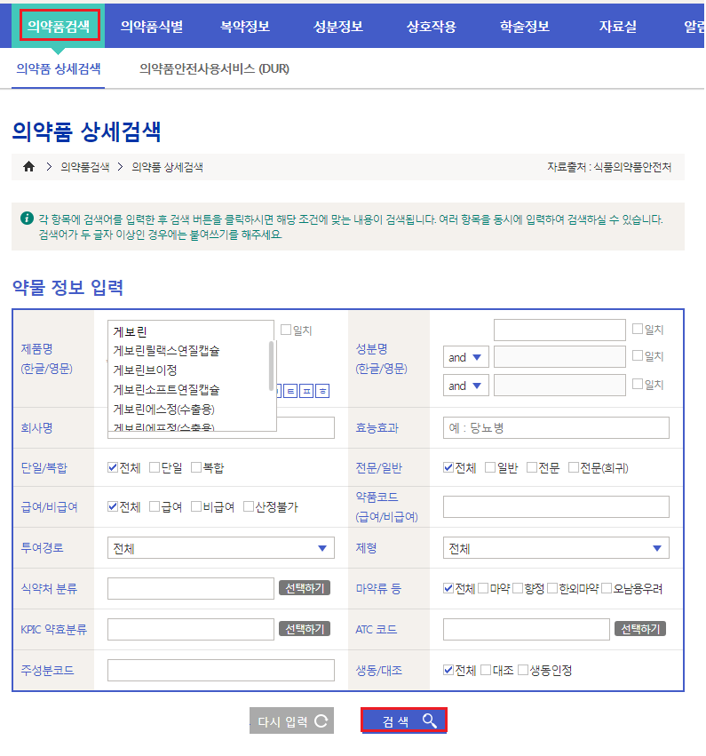 아래 사이트를 참고하여 현재 내가 복용하는 정보를 알아보도록 하자!