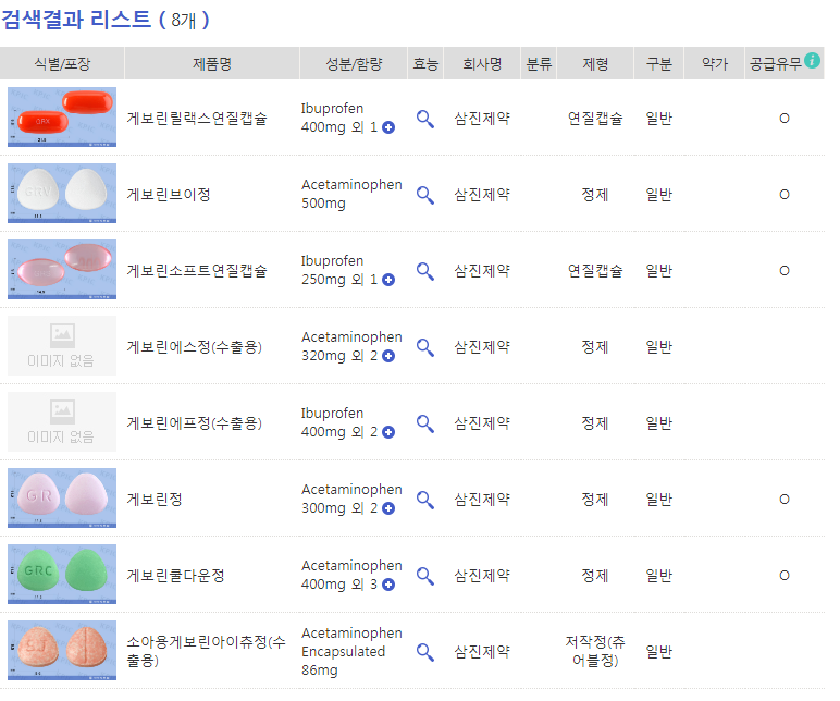 * 검색하여 제품 사진이 나오면 약 사진을 클릭 하여 세부정보를 확인할 수 있다.