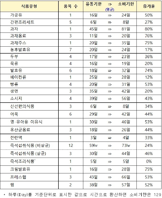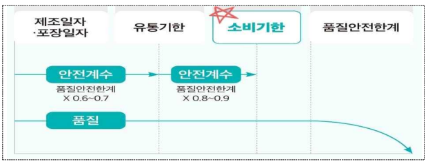 보통 유통기한은 식품을 안전하게 섭취할 수 있는 기간의 60∼70% 수준에서 정한다. 반면 소비기한은 80∼90%로 설정된다.